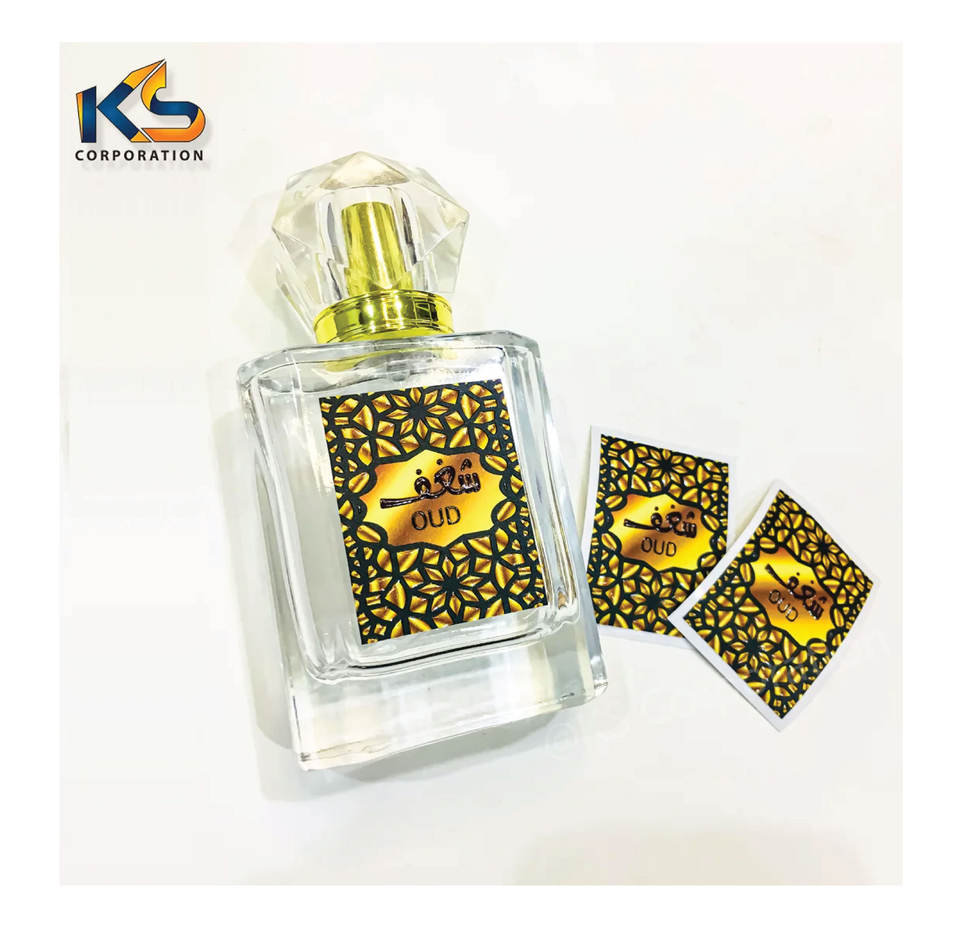 สติกเกอร์ฟอยล์สีทองที่กำหนดเองพีวีซีพิมพ์ลายด้วยแสง UV ฉลากกาวไวนิลกันน้ำเลือกได้คุณภาพสูงน้ำหอมโลชั่นบำรุงผิว