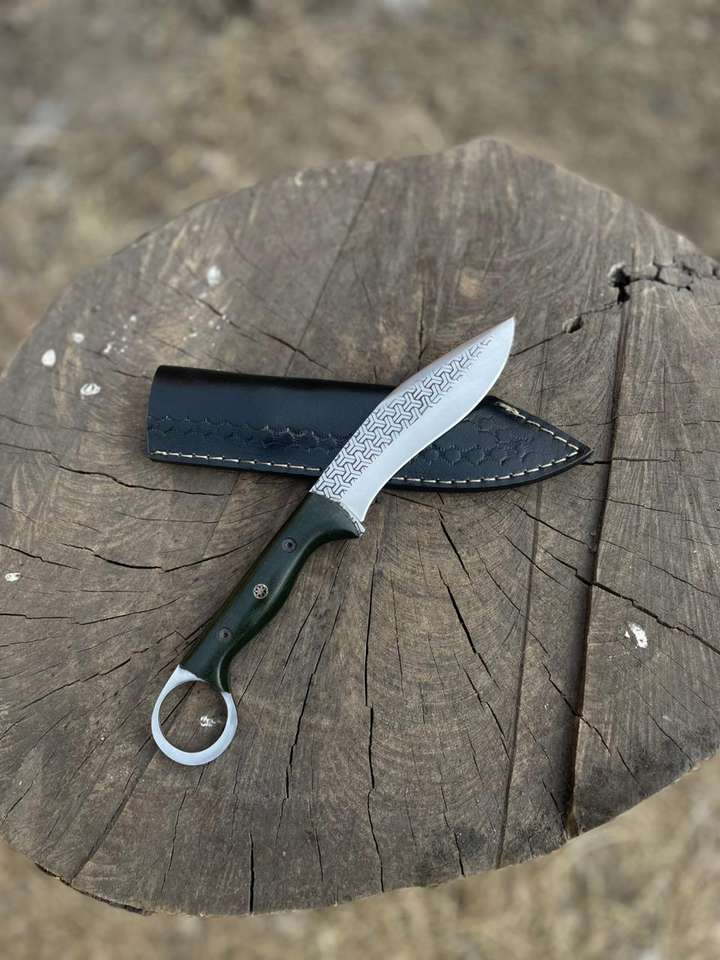 มีดล่าสัตว์ทำมือด้วยเหล็กคุณภาพดี ปลอกหนังลายนูน วัสดุแข็งแรง ราคาถูก MOQ ต่ำ