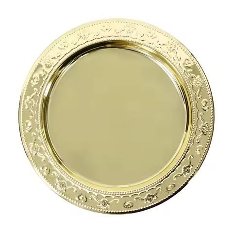 จานรองโลหะลายนูนทรงกลม สำหรับตกแต่งขอบจาน ใช้สำหรับจัดเลี้ยง
