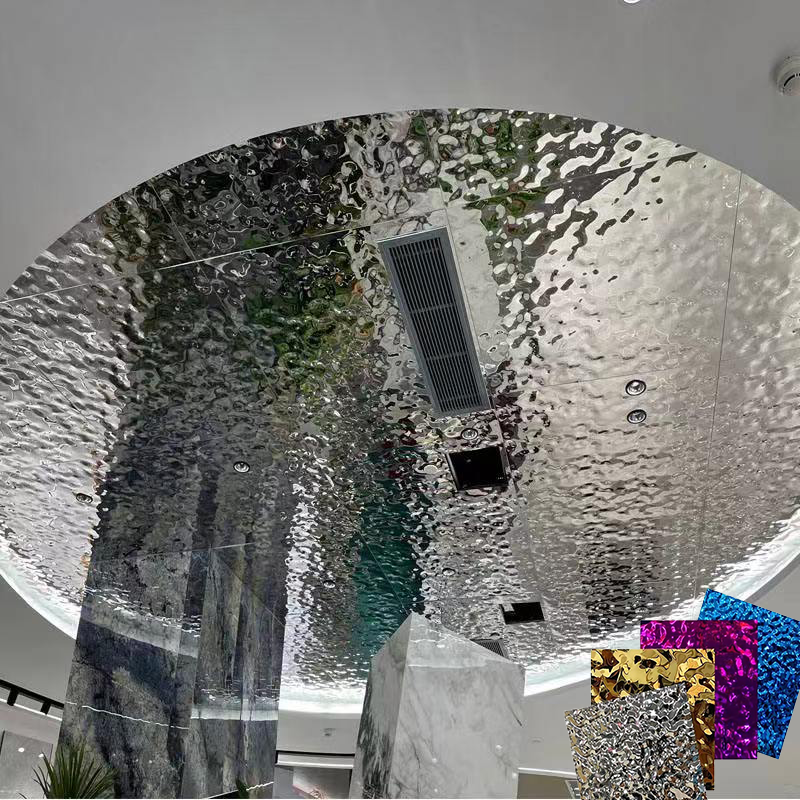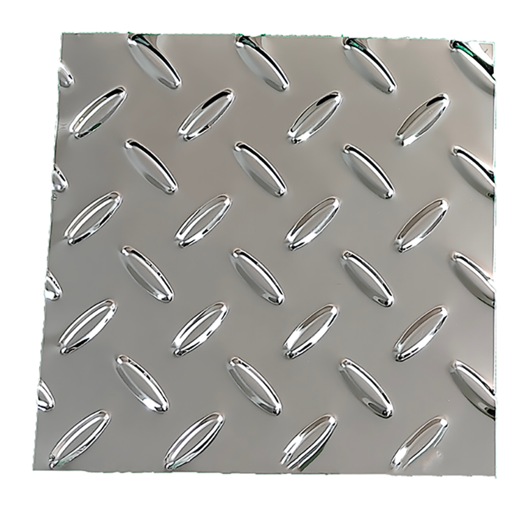 แผ่นสแตนเลสลายตารางเพชร ป้องกันการลื่น สำหรับปูพื้น แบบนูนเงาสีเงิน ขนาด 4x10 4x8 ฟุต ลายคลื่นน้ำ