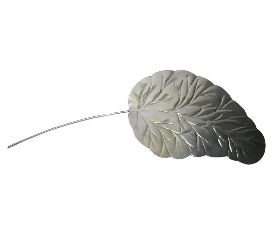 ป้ายโลหะรูปใบไม้สีเงินแบบนูน ตกแต่งสวนสวยงาม ใช้ประดับสนามหญ้ากลางแจ้ง