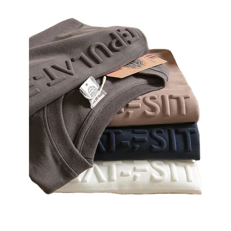 เสื้อยืดลายนูนสำหรับผู้ชายเสื้อผ้าแฟชั่นหรูหราเสื้อยืดลายนูนบน3D เสื้อผ้าคอตตอน300gsm คุณภาพสูงออกแบบโลโก้ได้ตามต้องการ