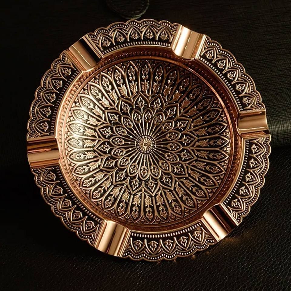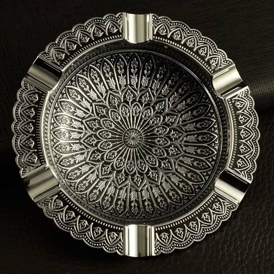 Embossed metal ash tray for hospitality spaces because they maintain a clean, upscale appearance after frequent use
