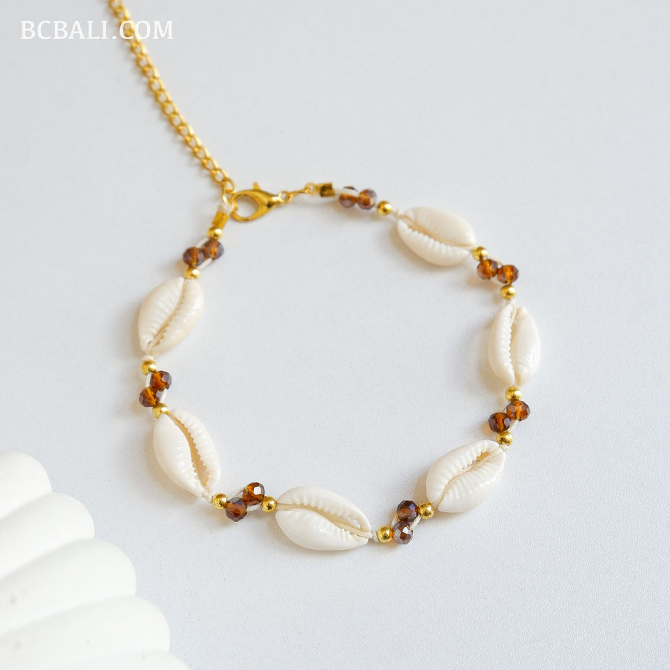 สัมผัสบรรยากาศชายหาดด้วยสร้อยข้อมือเปลือกหอยแท้ของเรา โดดเด่นด้วยรายละเอียดเปลือกหอยที่สวยงาม อุปกรณ์เสริมที่ได้แรงบันดาลใจจากมหาสมุทร