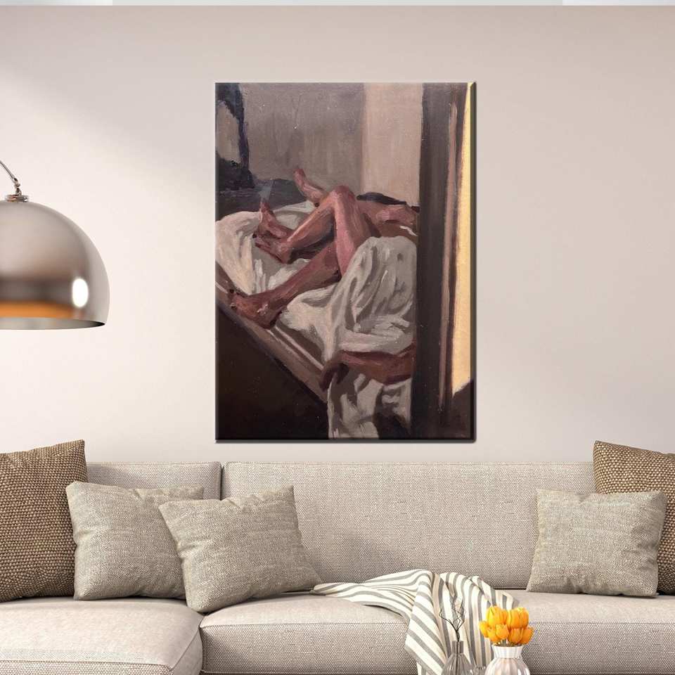 ภาพพิมพ์บนผ้าใบคู่รักที่กำลังจูบกัน - งานศิลปะติดผนังที่หรูหราและทันสมัย พร้อมกรอบสำหรับแขวน