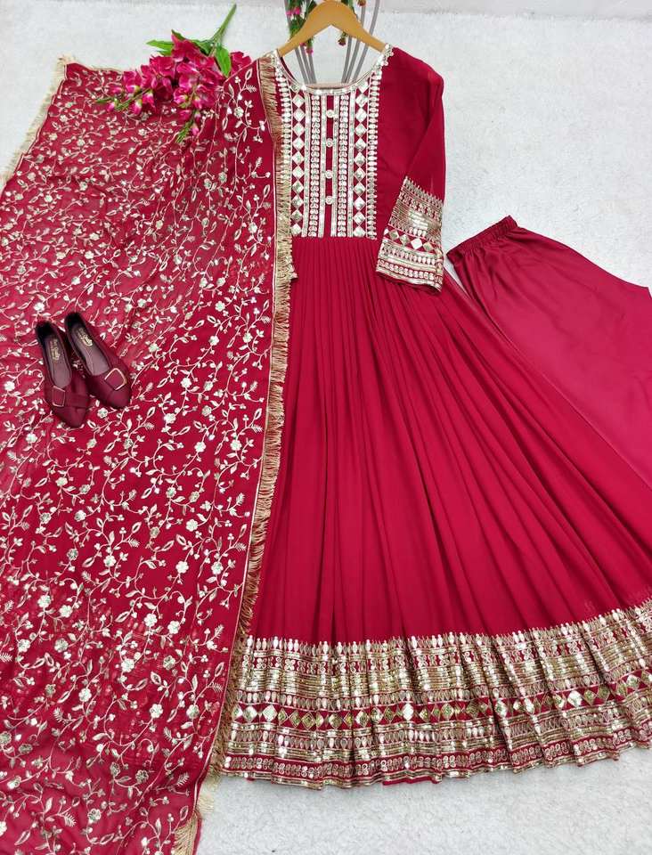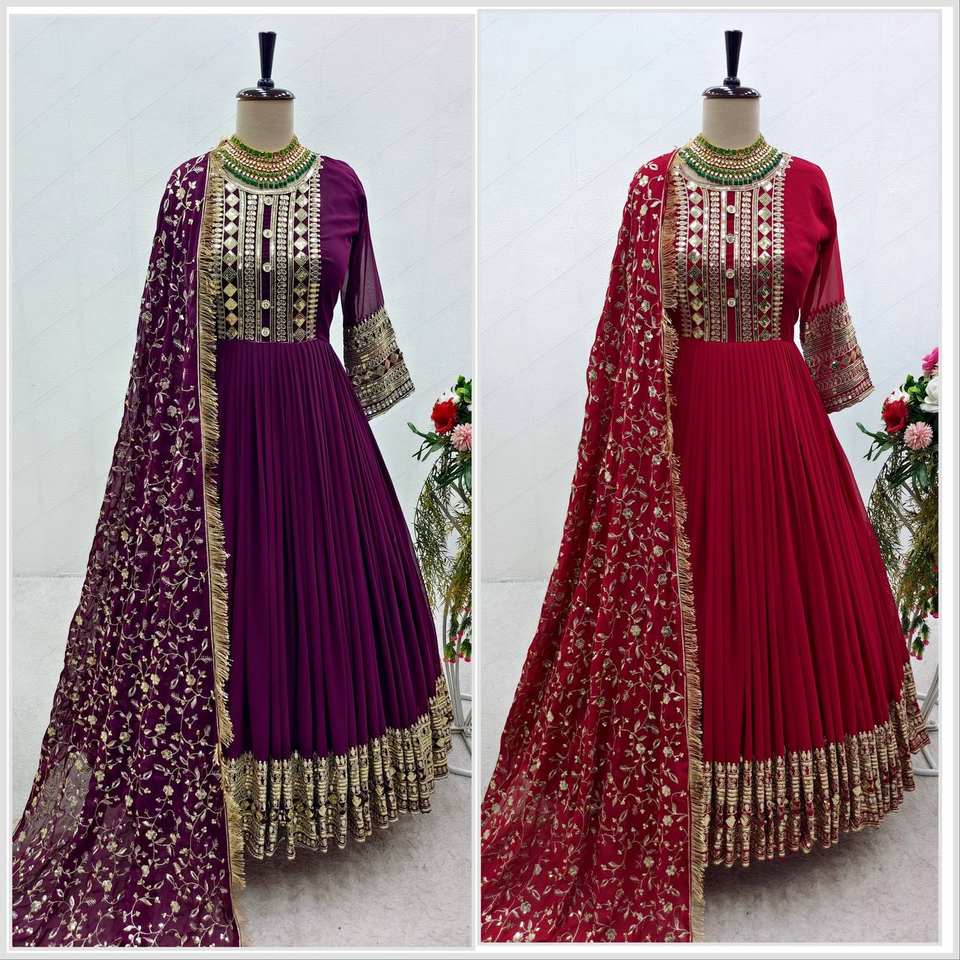 ชุดยาว anarkali ปักกับ dupatta สำหรับงานแต่งงานและงานปาร์ตี้การออกแบบที่สวยงาม
