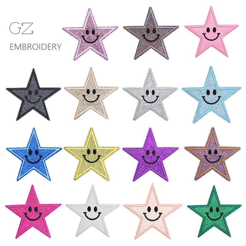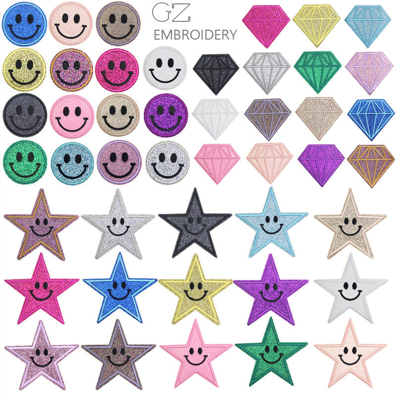 แผ่นปักลายหน้ายิ้มประดับกลิตเตอร์ สำหรับตกแต่งเสื้อผ้าและกางเกงยีนส์