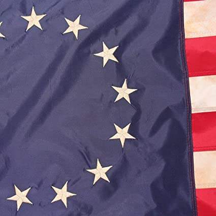 ธงปักลายเบ็ตซี รอสส์ ขนาด 3x5 ฟุต สีชา 13 จุด ลาย 13 ดาว แบบวินเทจ สำหรับภายนอกอาคาร ผลิตในอเมริกา น้ำหนัก 350 กรัม คุณภาพเยี่ยม
