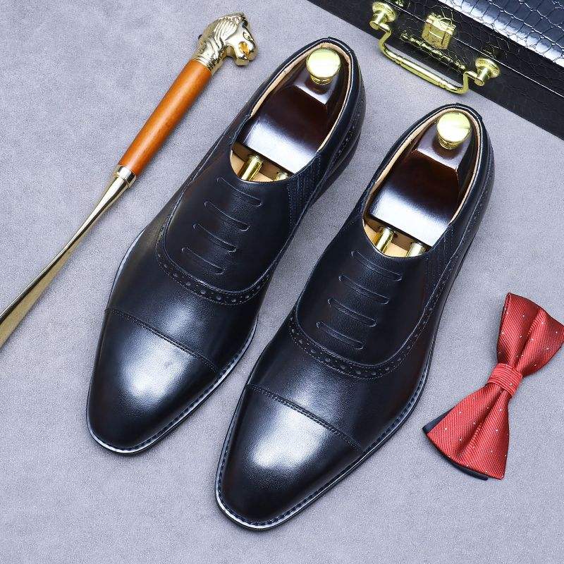 รองเท้าหนังแท้ทรงกลมปักลายแกะสลัก ระดับธุรกิจ ใส่ได้ทั้งแบบเป็นทางการและลำลอง ระบายอากาศได้ดี กันลื่น เหมาะสำหรับฤดูใบไม้ร่วง ใช้งานได้หลากหลายสำหรับผู้ชาย