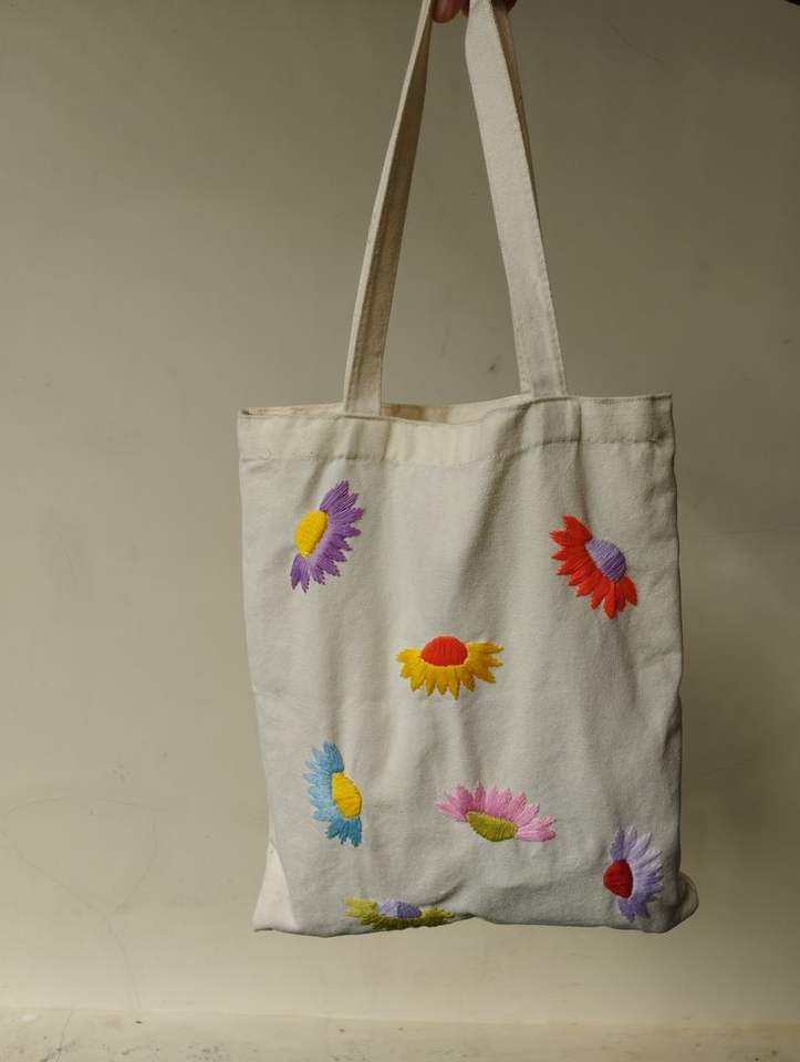 กระเป๋าผ้าแคนวาสลายผลไม้ปักลาย กระเป๋าถือประดับลูกปัด กระเป๋าช้อปปิ้งแบบใช้ซ้ำได้ กระเป๋าใส่ผักสำหรับตลาด กระเป๋าสะพายไหล่