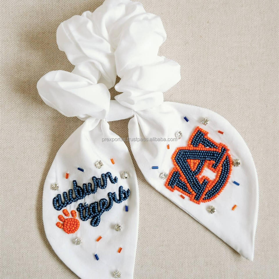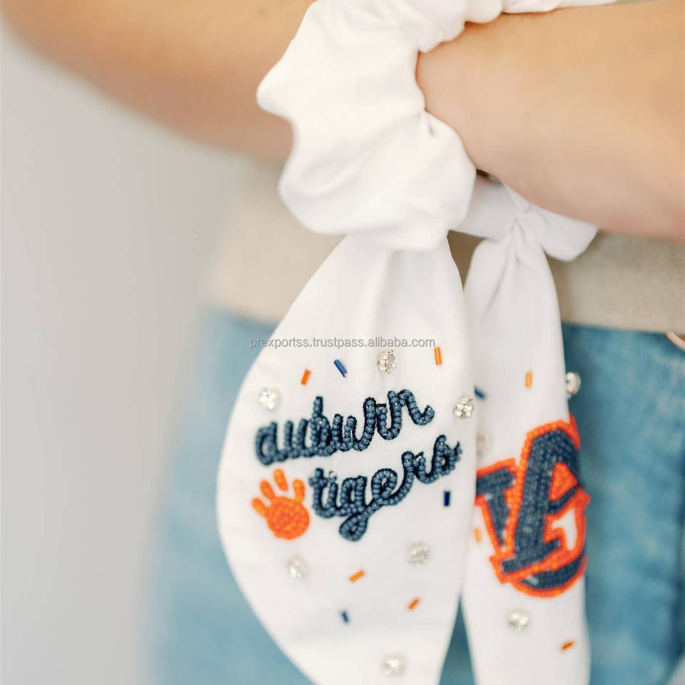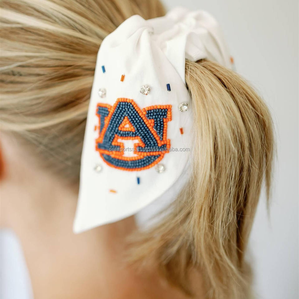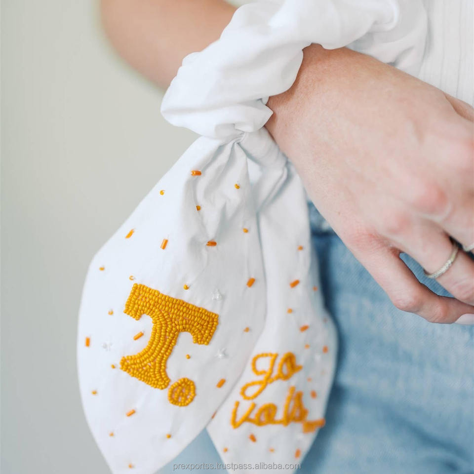 โบว์ผูกผมปักลาย Go Vols หลากสี ประดับลูกปัด ทำมือสำหรับเด็กผู้หญิง ยางรัดผมแบบผ้าซาติน ปรับได้ เป็นมิตรกับสิ่งแวดล้อม