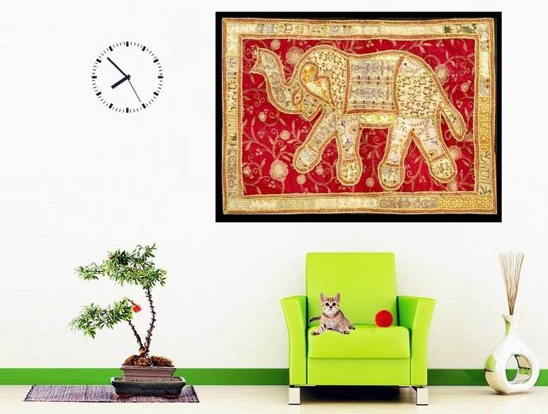ผ้าปูโต๊ะปักลายช้าง งานปักมือ ประดับเลื่อม ตกแต่งผนัง ผ้าแขวนผนัง งานปักลายชาติพันธุ์