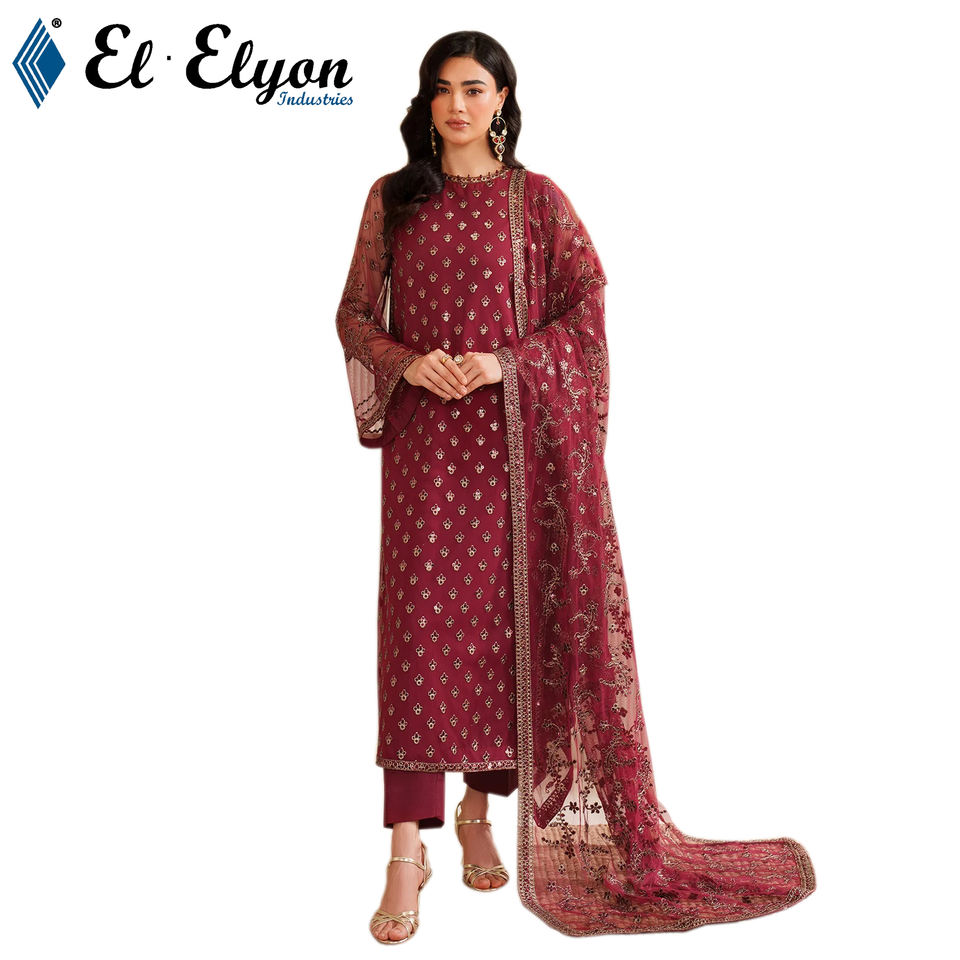 ชุดราตรีงานปักมือทำจากผ้าชีฟองแต่งเลื่อมแบบวินเทจ ทรงเอไลน์ยาวลากพื้น พร้อมชายกระโปรงแบบสเวปเทรน