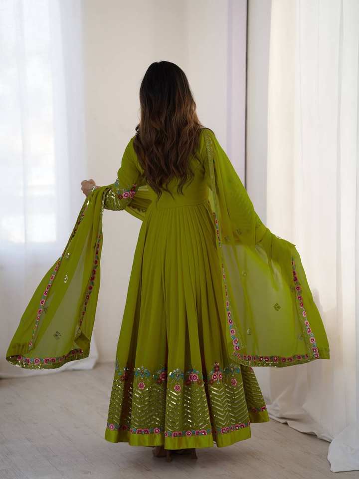 ชุดสلوارผ้าจอร์เจตต์ปักลายหนาสำหรับผู้หญิง ชุดออกงานดีไซเนอร์ ชุดอินเดียแบบดั้งเดิม ผ้าคลุมไหล่ แห้งเร็ว ขายส่ง