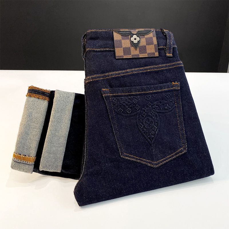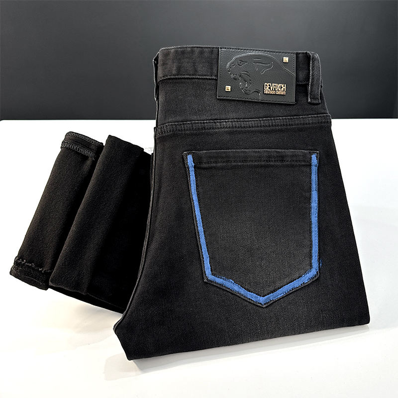กางเกงยีนส์ปักลายสำหรับผู้ชายกางเกงทรงกระบอกตรงทรงหลวมลำลองยืดหยุ่นสำหรับผู้ชาย2025ฤดูร้อนแบบสั่งทำ