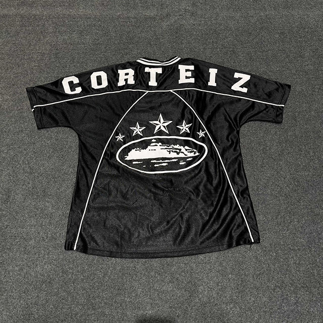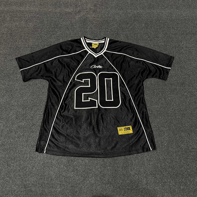เสื้อยืดเจอร์ซีย์แขนสั้นปักลายตาข่ายสไตล์สปอร์ต หมายเลขสไตล์ฮิปฮอป ยูนิเซ็กส์ ทรงหลวม ทันสมัย