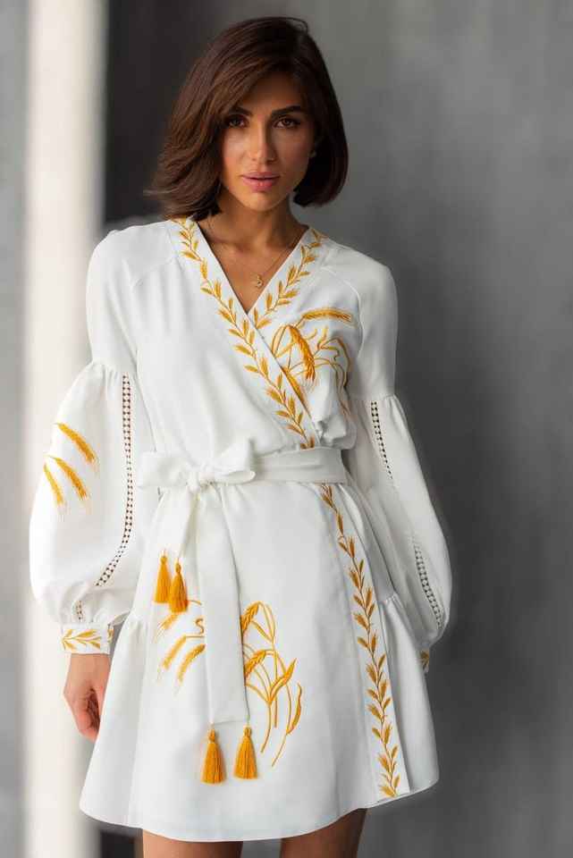ชุดเดรสปักมินิสีขาว vyshyvanka ยูเครนชุดแต่งงานโบโฮข้าวสาลีสไตล์ชนบทสำหรับผู้หญิงเสื้อผ้าสไตล์เรียบง่าย S M