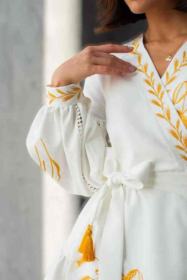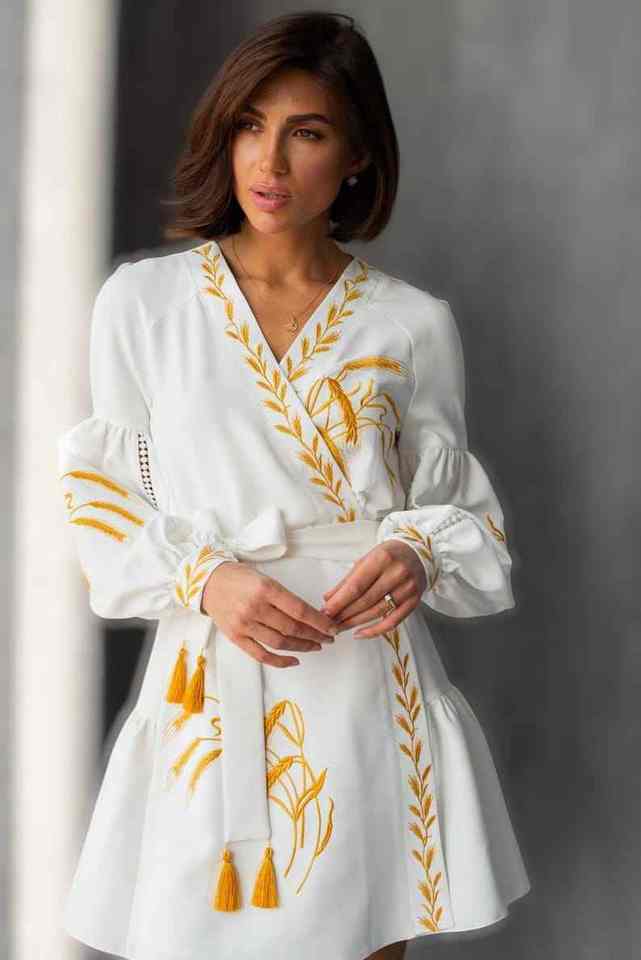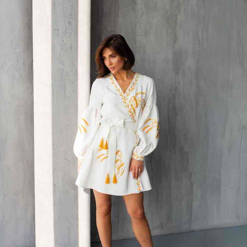 ชุดเดรสปักมินิสีขาว vyshyvanka ยูเครนชุดแต่งงานโบโฮข้าวสาลีสไตล์ชนบทสำหรับผู้หญิงเสื้อผ้าสไตล์เรียบง่าย S M