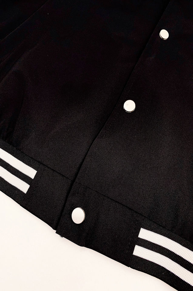 เสื้อแจ็กเก็ตเบสบอลสีดำสำหรับผู้ชายเสื้อแจ็กเก็ตสีดำแบบเรียบพิมพ์ลายสินค้ามาใหม่2025