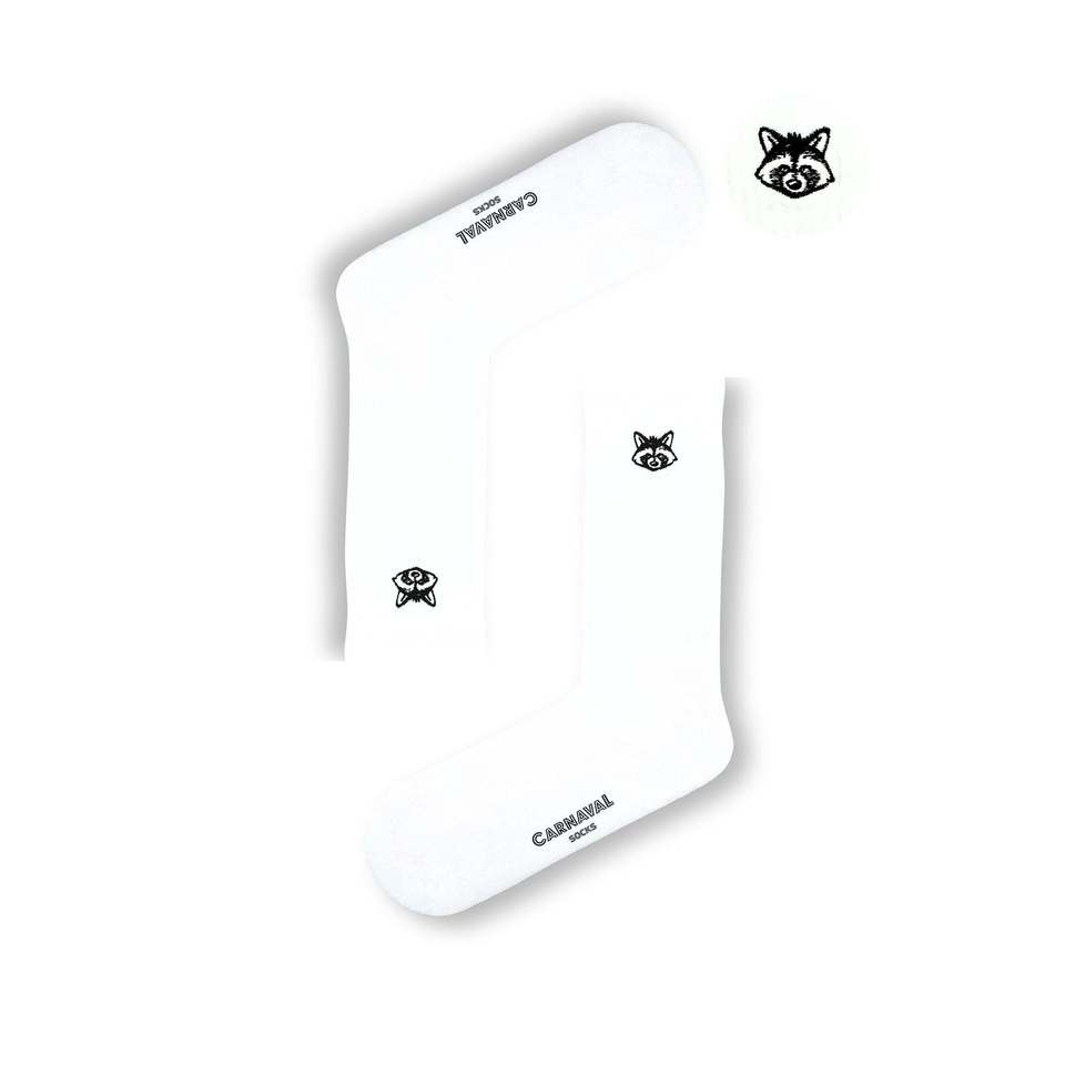 ถุงเท้าผู้ชายปักลายแรคคูนสีขาว