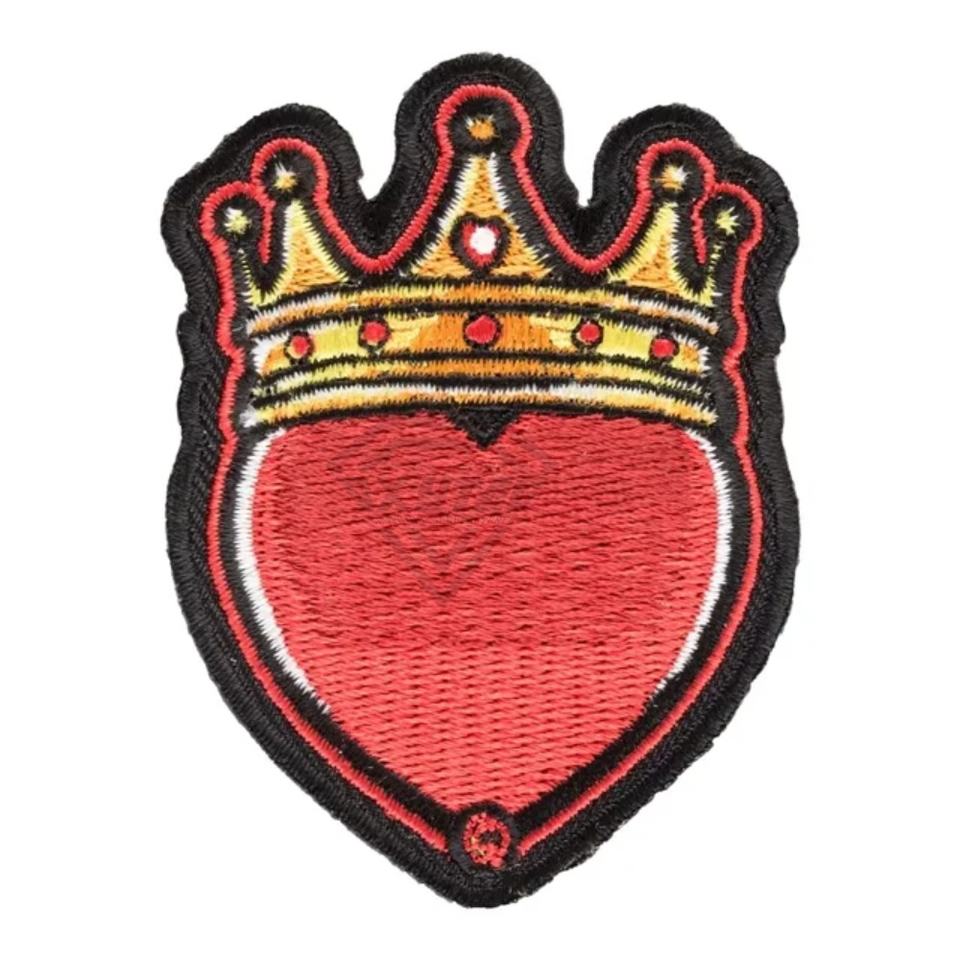 แผ่นปักรูปหัวใจสีแดงแบบปักด้วยผ้าทอลายมงกุฎสีทองแผ่นติดกาวสำหรับปักขอบเมอร์โรว์สำหรับหมวกและผ้า