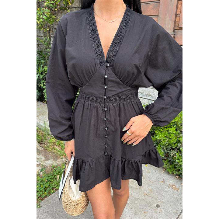 กระโปรงริบบิ้นปักลาย ชุดเดรสระบาย 2897 เอวยางยืด