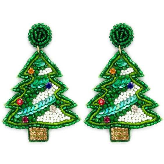ต่างหูลูกปัดปักลายต้นคริสต์มาสประดับลูกปัดต่างหูเครื่องประดับคริสต์มาสต่างหูดีไซน์ต้นไม้มีสไตล์