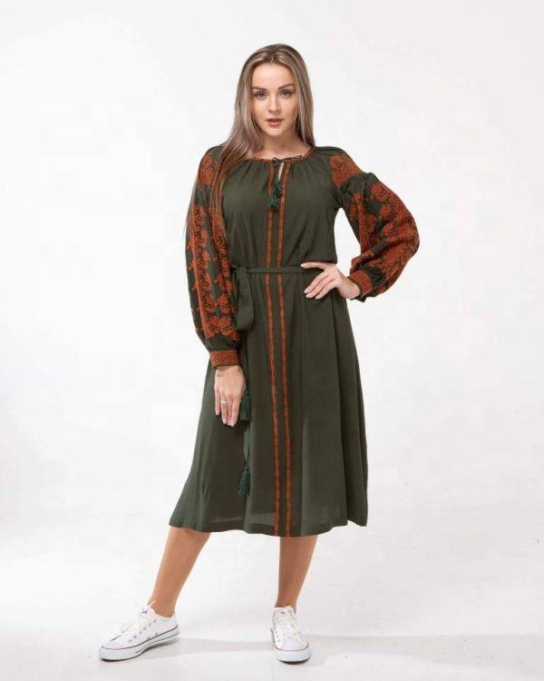 ชุดเดรสยูเครนปักออกแบบได้ตามต้องการชุดปาร์ตี้แฟชั่นคอวีเปิดด้านหน้ามีเข็มขัด