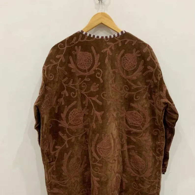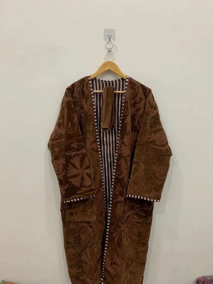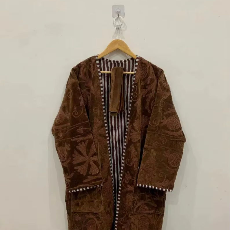 Embroidered Velvet Suzani Long Kimono Long Suzani Robe Winter Floral Jacket Women Duster Kimono Jacket Kimono Coat Gift For Her