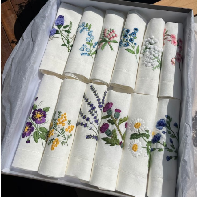 ผ้าเช็ดปากผ้าลินินปักเย็บติดกันสำหรับงานแต่งงานผ้าเช็ดปากผ้าลินินโมโนแกรมสำหรับงานแต่งงาน