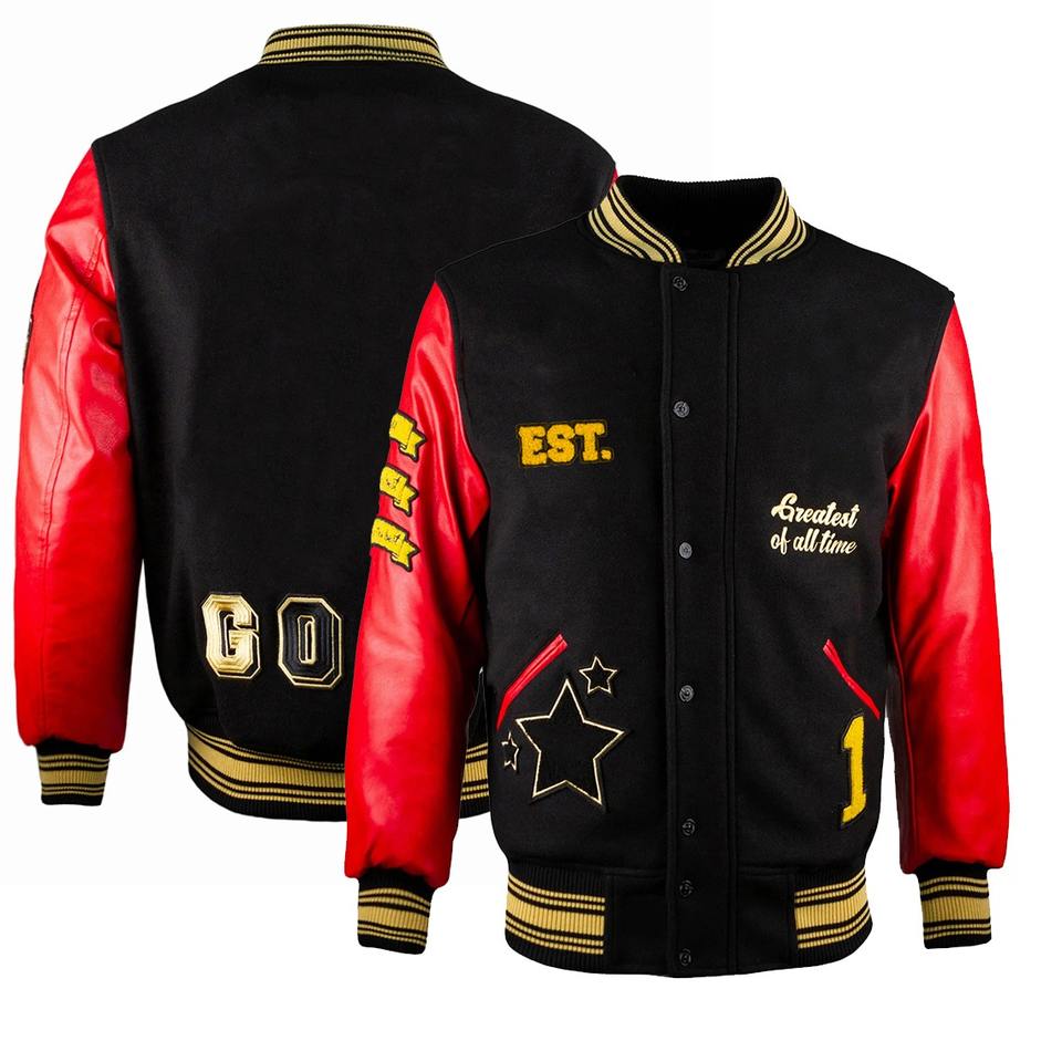 เสื้อแจ็คเก็ตเบสบอลปักลายสำหรับผู้ชาย แฟชั่นสไตล์วาร์ซิตี้และบอมเบอร์แจ็คเก็ต รับออกแบบและปักโลโก้เสื้อวาร์ซิตี้