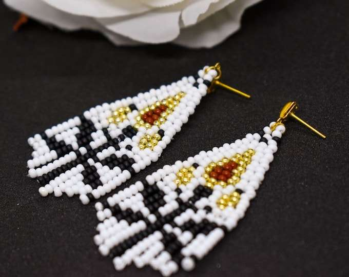 งานฝีมือปักลาย งานปักมือประดับลูกปัด ดีไซน์ใหม่ ต่างหูแบบห้อย สวมใส่ได้ทุกวัน จากอินเดีย