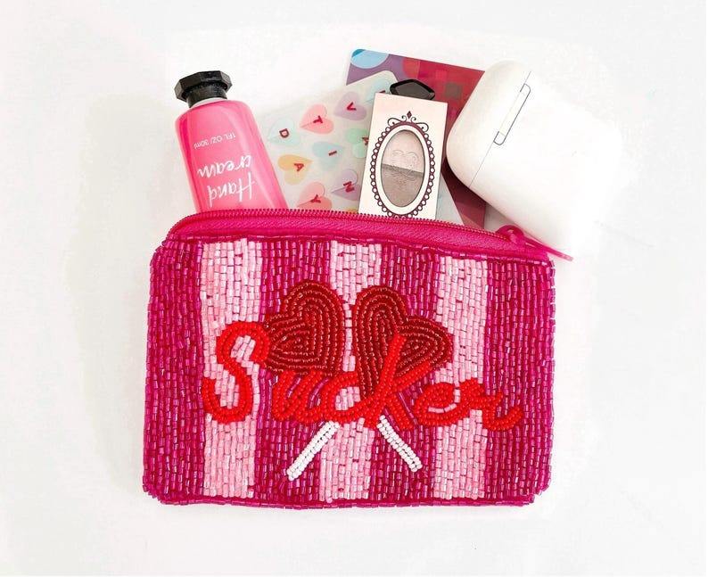 งานฝีมือปักลายยอดนิยม กระเป๋าใส่เหรียญประดับลูกปัดทำมือ ขายดี พร้อมห่วงคล้องถอดได้ สำหรับใส่เงินและบัตรในวันแข่งขัน