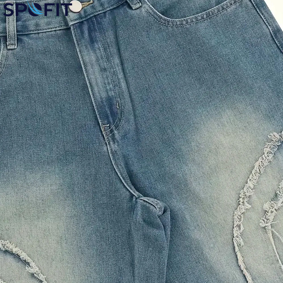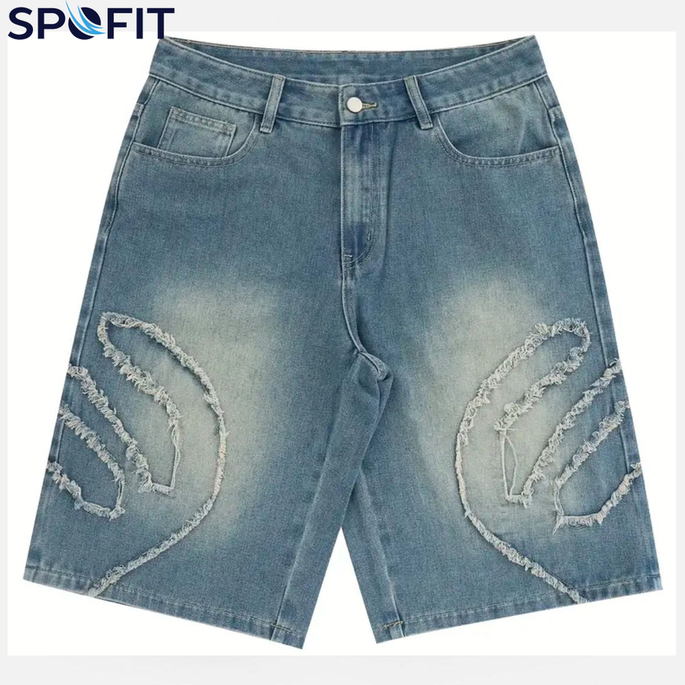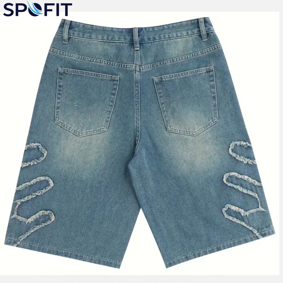 กางเกงยีนส์ปักลายสไตล์สตรีทแวร์ทรงหลวมสำหรับผู้ชาย กางเกงขาสั้นลำลองสีพื้นทรงตรงใส่สบายสไตล์ฤดูร้อน แห้งเร็ว ระบายอากาศได้ดี