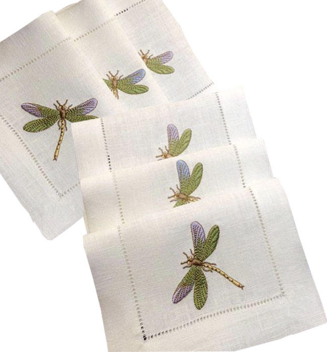 เย็บปักถักร้อยการออกแบบแมลงปอค๊อกเทลผ้าเช็ดปากค๊อกเทลหรูหราผ้าลินินค๊อกเทล Hemstitch สำหรับบาร์บ้านร้านอาหารโรงแรมคริสมาสต์