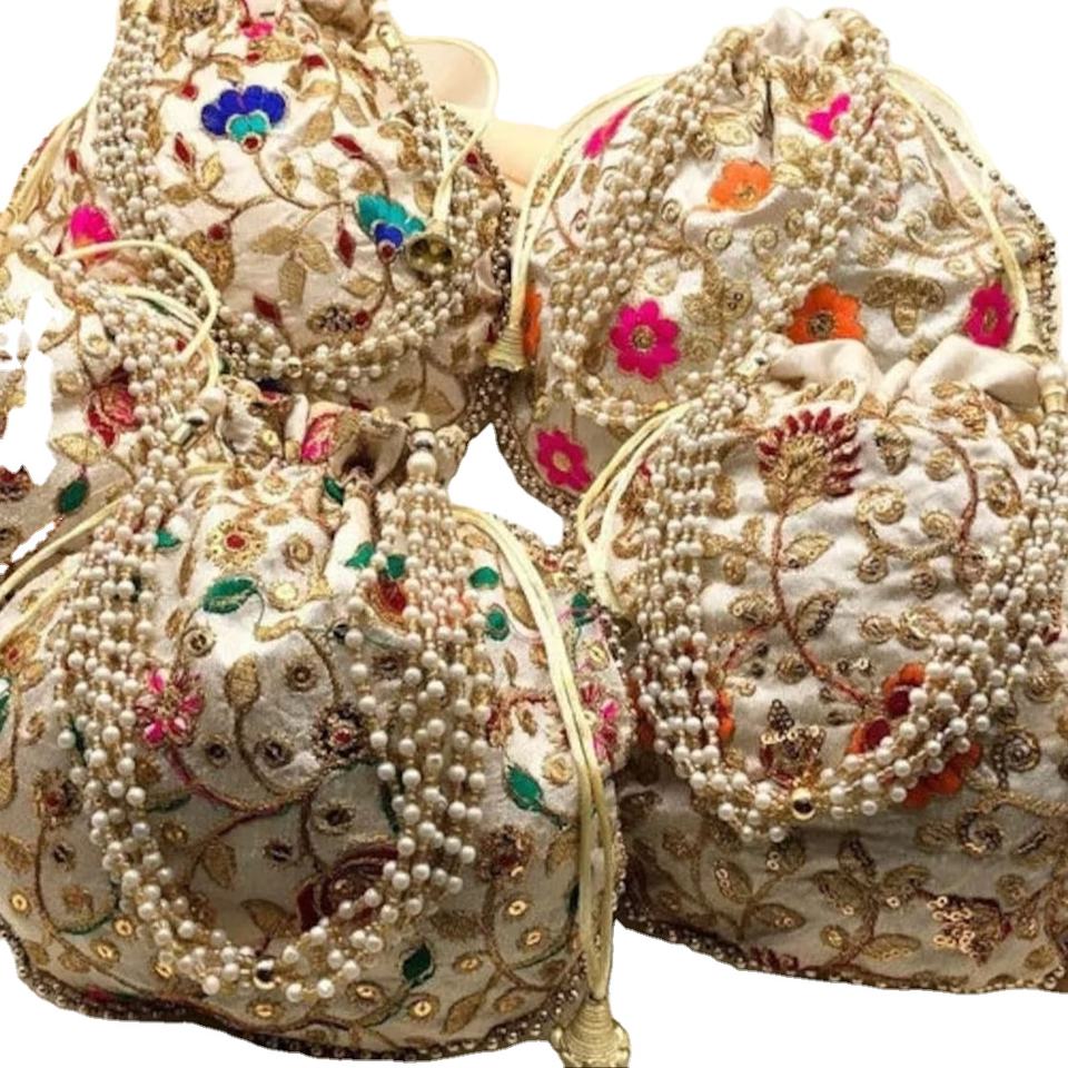 Indian Handmade Embroidery Drawstring Potli Sequin Work Silk Lining Lock Closure Return Gifts Festive & Party Favors