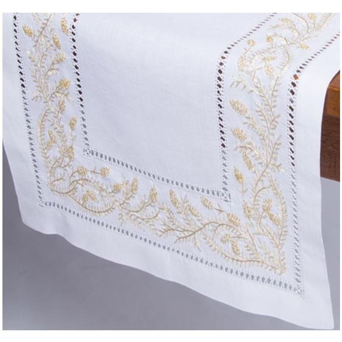 ผ้าคาดโต๊ะปักลายดอกไม้สีทอง,ผ้าคาดโต๊ะทำจากผ้าฝ้ายสำหรับบ้านโรงแรมร้านอาหาร