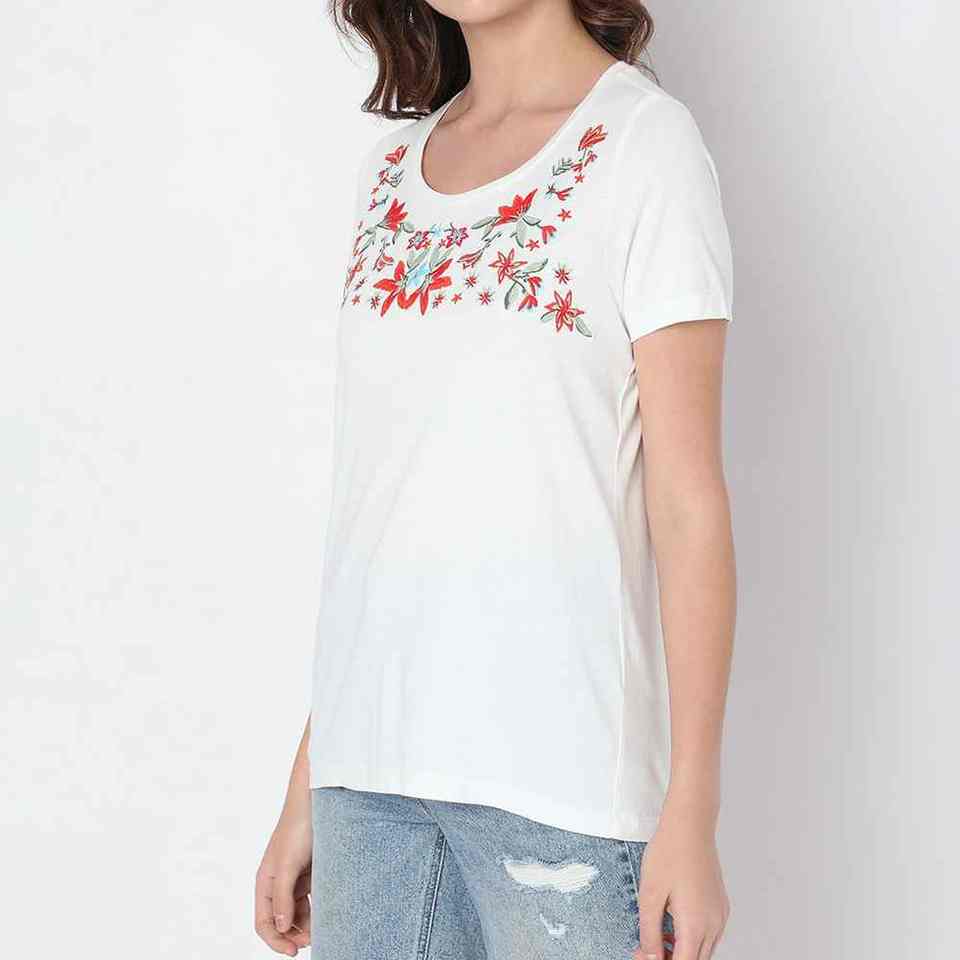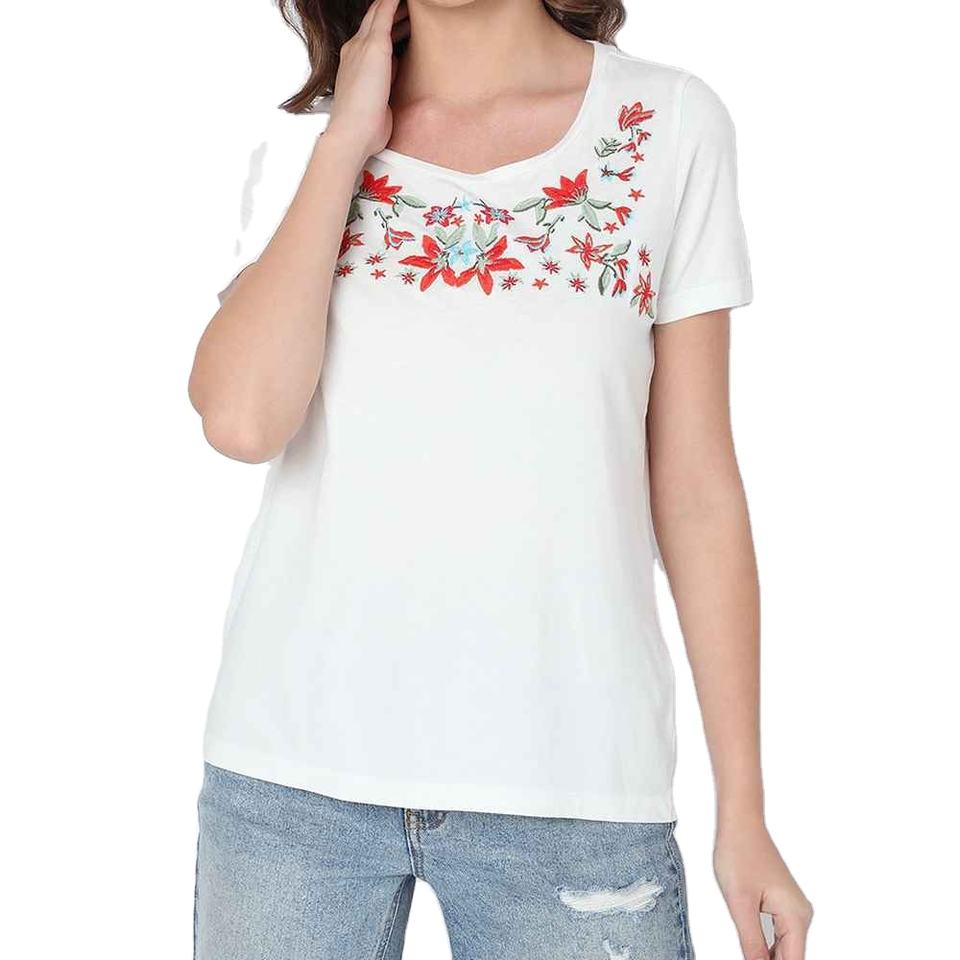 เสื้อยืดผู้หญิงพิมพ์ลายด้วยมือปักสีและขนาดที่กำหนดเองได้