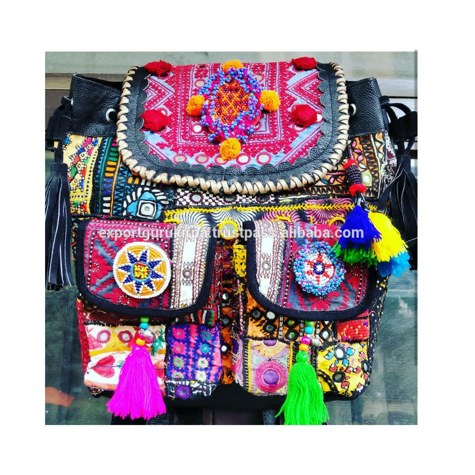 เย็บปักถักร้อยอินเดียชนเผ่าชาติพันธุ์ผ้าวินเทจเป้สำหรับสาวๆ