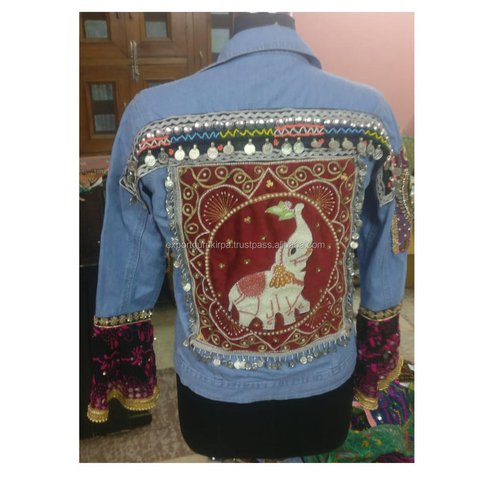 แจ็กเก็ตผ้ายีนส์ Banjara สำหรับผู้หญิงแจ็กเก็ตปาร์ตี้ปักลายสำหรับฤดูหนาวตกแต่งด้วยกระดุมผ้าคอตตอนสำหรับงานเลี้ยงคริสต์มาส