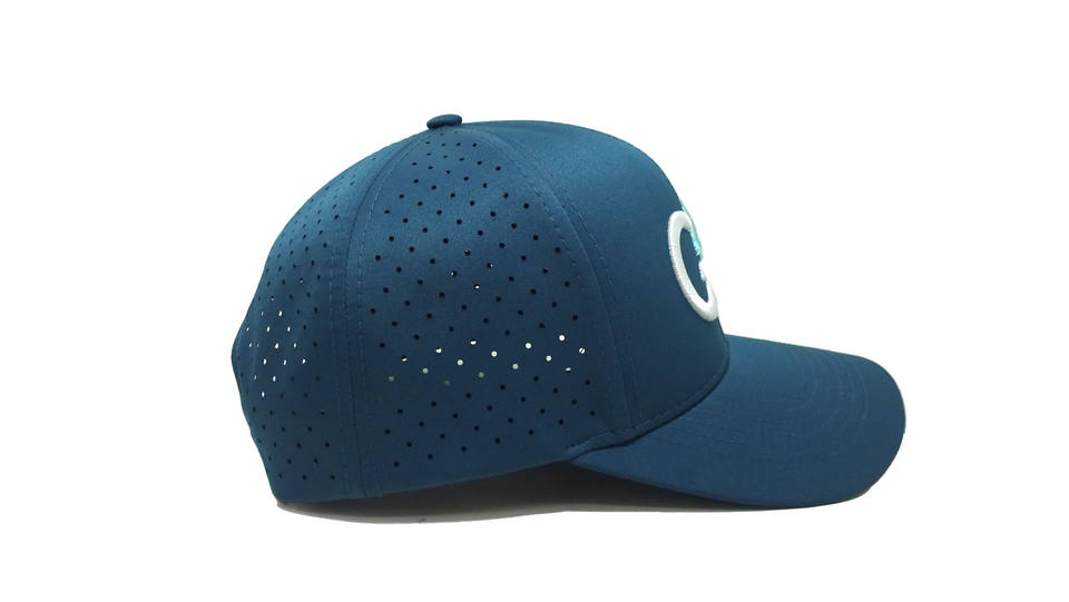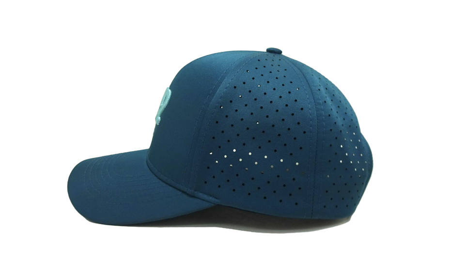 หมวกกอล์ฟผ้าสแปนเด็กซ์โพลีเอสเตอร์ปักโลโก้หมวกปีกโค้งแบบมีรูตัดด้วยเลเซอร์หมวกแก๊ปโรงงานจากเวียดนาม