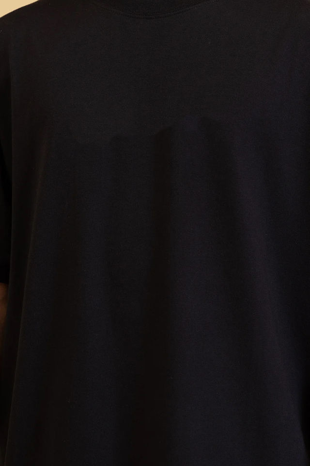 เสื้อยืดแขนสั้นทรงโอเวอร์ไซส์ คอตั้ง ปักโลโก้ สไตล์เทรนดี้ ไหล่ตก ผ้าโพลีเอสเตอร์ ทวิลล์ สำหรับผู้ชาย สไตล์ไฮสตรีท
