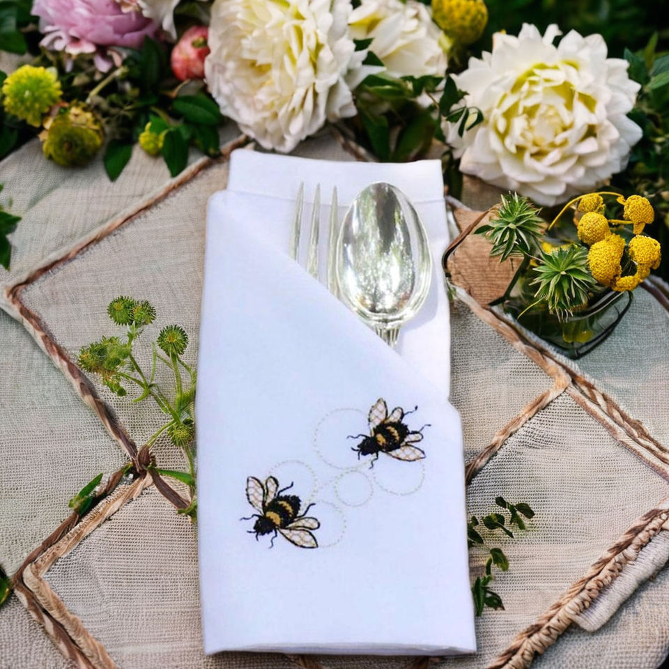 ผ้าเช็ดปากแบบปักลายรูปผึ้ง,ผ้าเช็ดปากผ้าฝ้ายสีขาวสำหรับงานแต่งบ้านโรงแรมร้านอาหาร