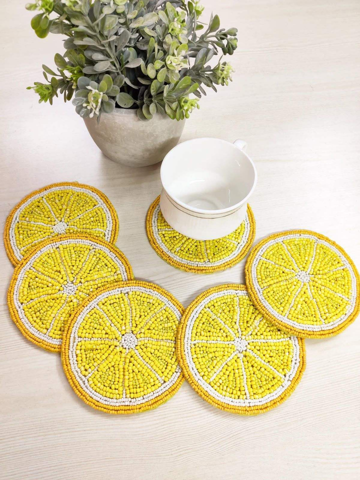 Embroidery Sea Shell Beach Design 4 Set Coaster Durable Modern Unique Cute Beautiful Trendy Stylish