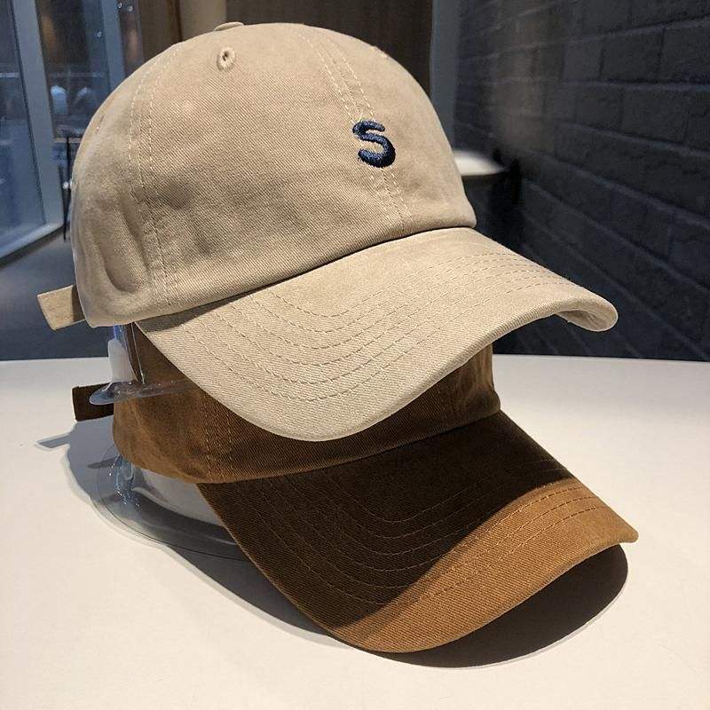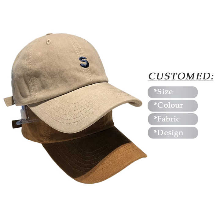 หมวกเบสบอลปักลายหมวกปีกโค้งสีทึบผ้าฟอกสีสำหรับกีฬากลางแจ้ง