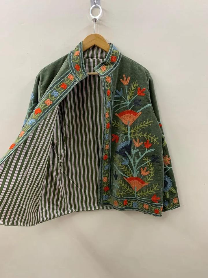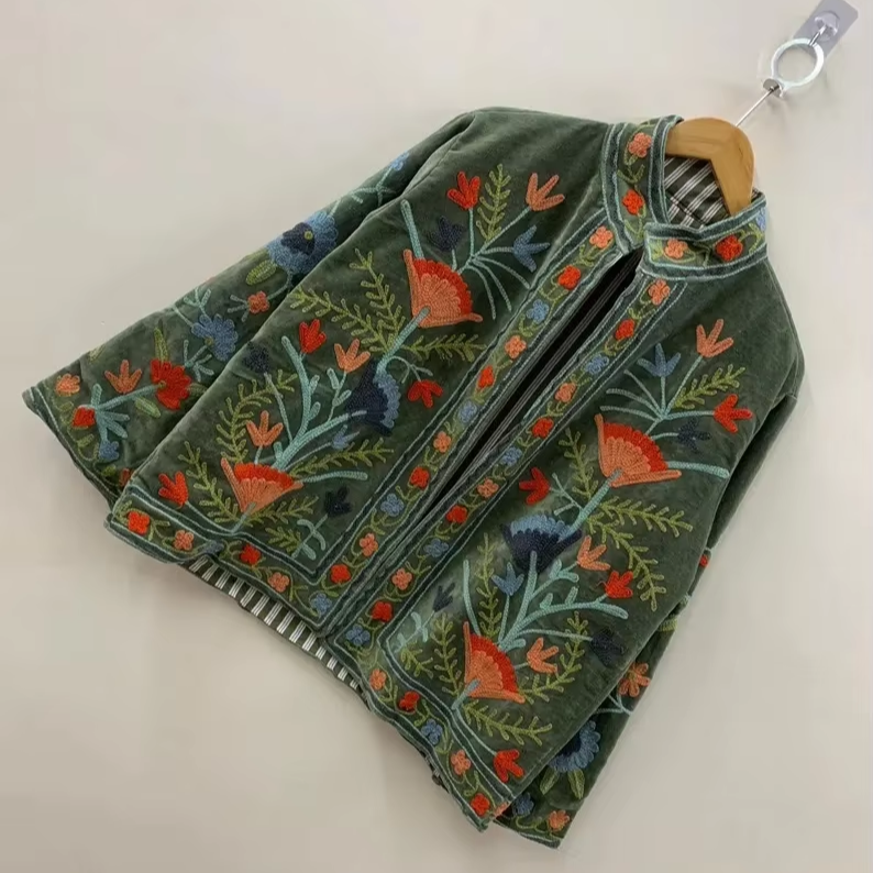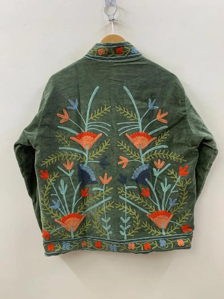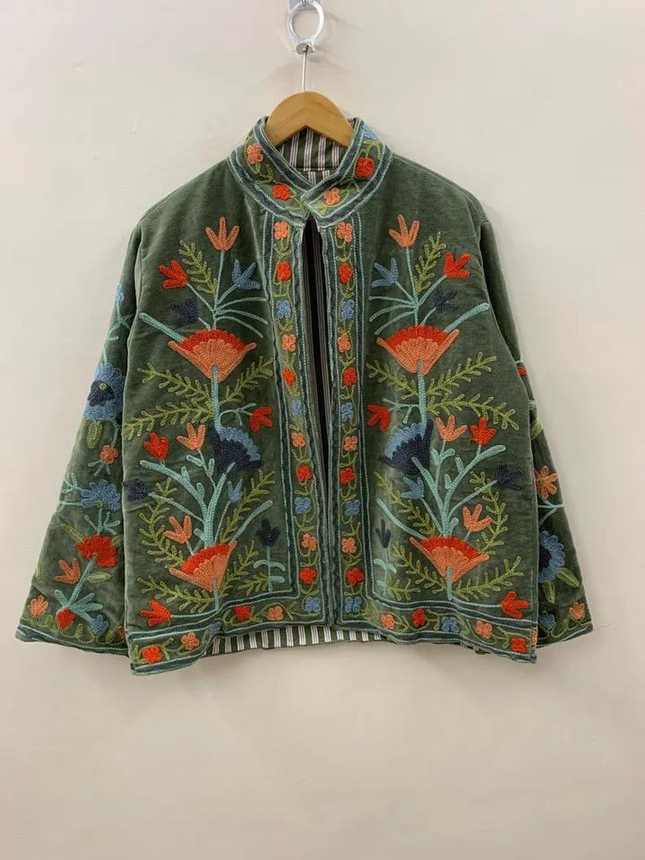 Suzani เสื้อแจ็คเก็ตผ้าคอตตอนสั้นกำมะหยี่ปักลายดอกไม้, เสื้อโค้ท suzani ปักลายดอกไม้