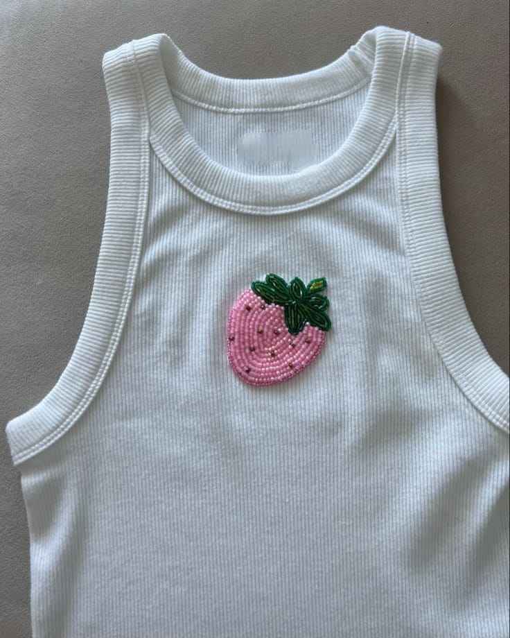 เสื้อกล้ามปักลายดอกไม้เขตร้อนสำหรับผู้หญิงใส่เที่ยวทะเลช่วงฤดูร้อน ผ้าคอตตอนริบบ์สีชมพูประดับลูกปัดลายดอกชบา