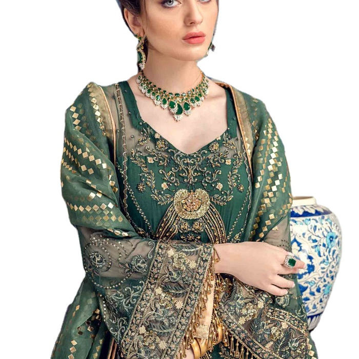 2025ใหม่คอลเลกชันการเย็บปักถักร้อยงานปาร์ตี้หนักสามชิ้นชุดปากีสถานและอินเดีย salwar kameez ทำจากผ้าไหม