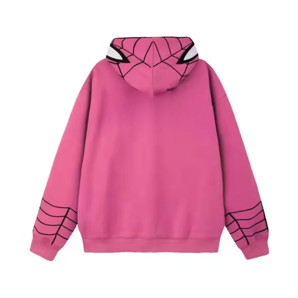 เสื้อสเวตเตอร์ถักมีซิปถักลายสำหรับผู้ชายและผู้หญิงเสื้อฮู้ดแมงมุมแนวสตรีทขนาดใหญ่พิเศษสำหรับฤดูใบไม้ร่วง