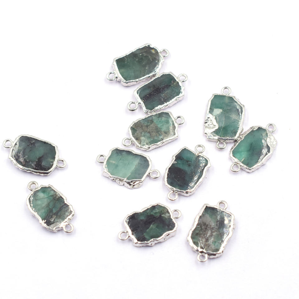 มรกตขนาด 19 ถึง 21 มม. พร้อมห่วงรูปสี่เหลี่ยมผืนผ้า ชุบเงิน สำหรับทำเครื่องประดับ